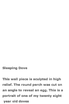 Bird Sculpture & Dove Images : Pet doves were the models for these dove sculptures. Dove images are a perfect subject for ornament and relief sculpture on buildings as demonstrated by the affinity for architecture of their pigeon cousins. These friezes have been installed over fireplaces, windows and doorways. Commissioned works include a dove frieze on the Aspen Hill Library in Maryland and a townhouse in Philadelphia.