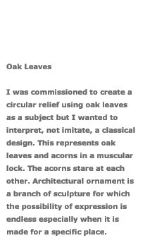 Nature offers an enormous range of subject material for architectural ornament. The art form of architectural decoration can be unique, expressive, elegant, and powerful when truly integrated into building design. Hollow cast cement is a perfect material for this application. Commissioned works include a column capital for Trinity Church in Princeton, NJ and architectural ornaments on various buildings in Philadelphia, PA.